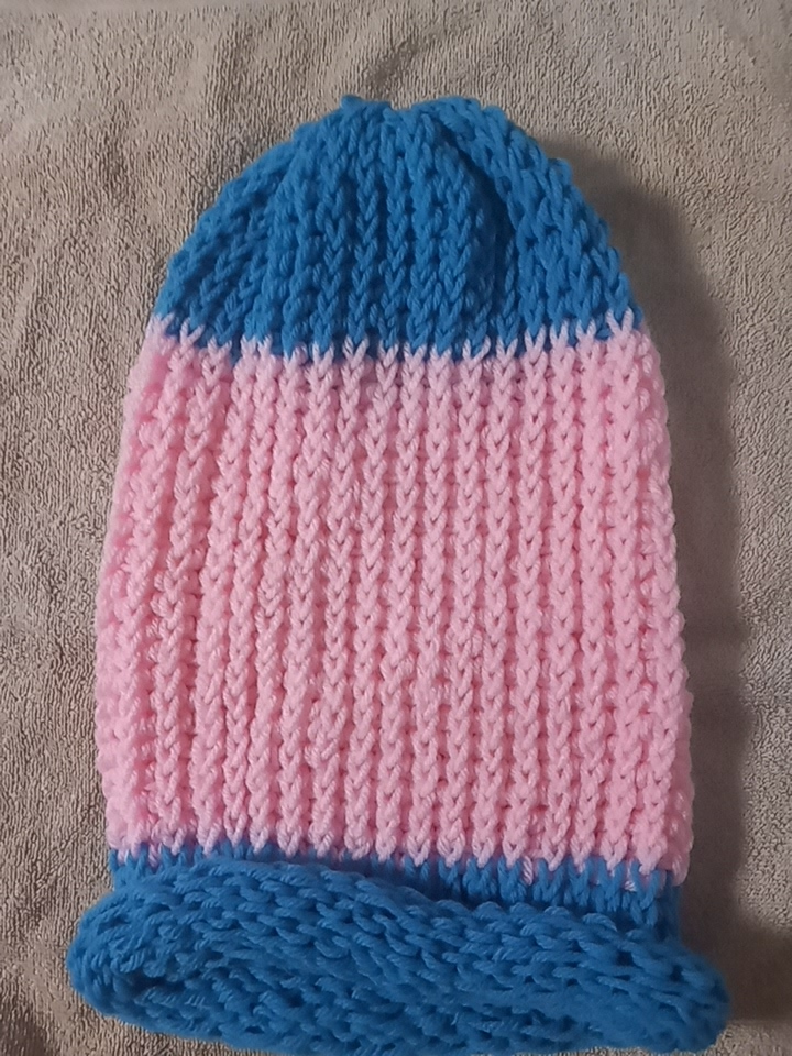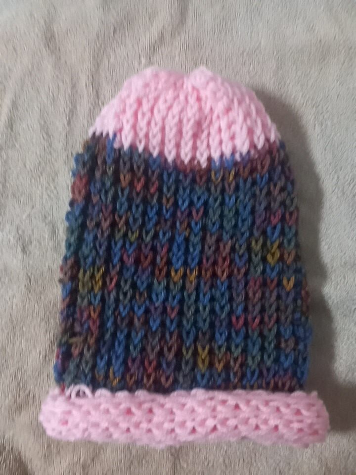 This is a beige knitted scarf I made on a loom.